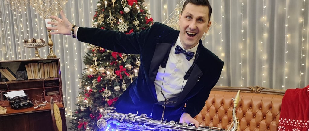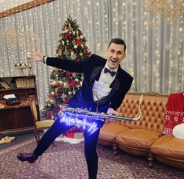 Šioje nuotraukoje matote mane su išskirtinai dekoruotu saksofonu, apjuostu šviečiančiomis LED lemputėmis. Gruodžio mėnesį su šiuo kūriniu sukuriu ypatingą atmosferą savo koncertuose, pridėdamas šiek tiek šventinio žavesio ir romantikos.
